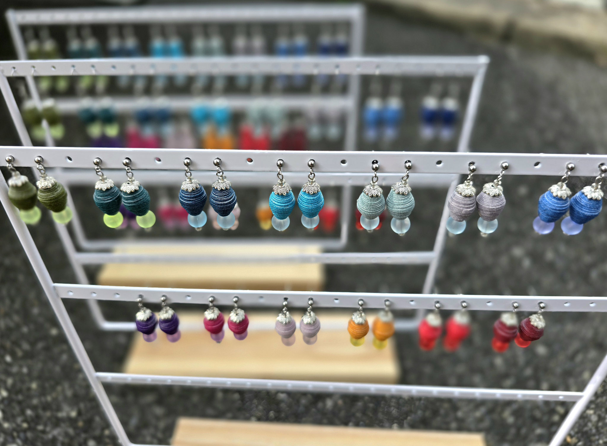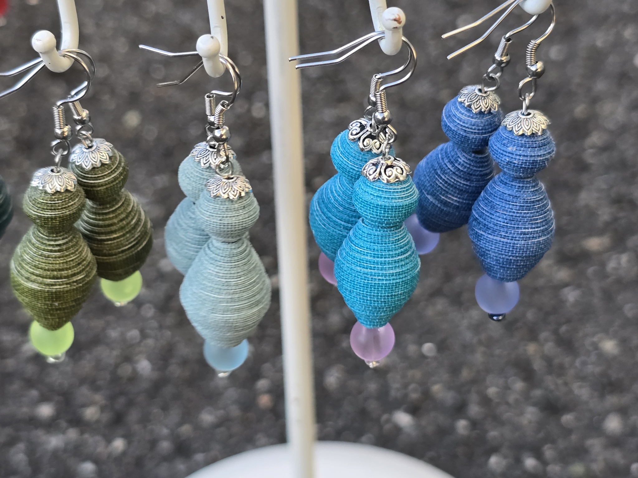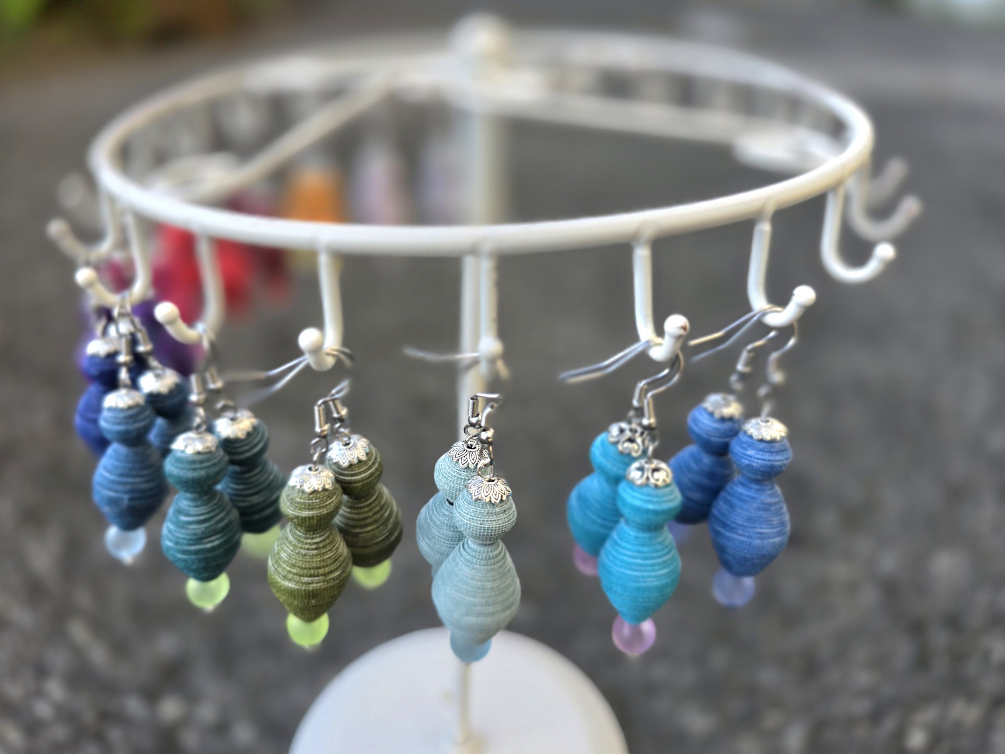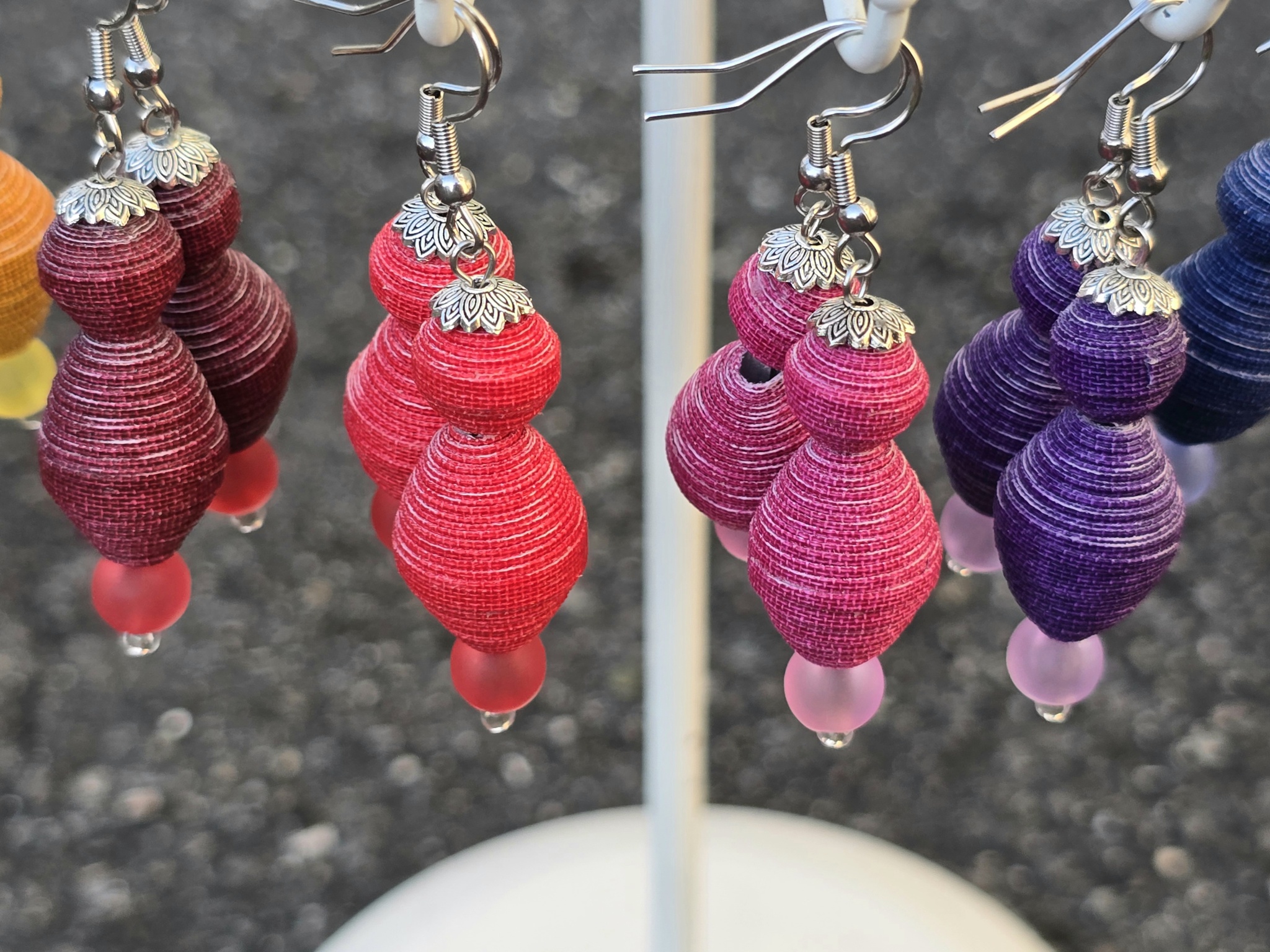 Lebensfroh wie alle unsere Unikate präsentiert sich unser Ohrschmuck in mindestens 13 ausdrucksstarken Farben. Jede Perle drehen wir von Hand aus unseren griffigen und langlebigen Einbandgeweben, woraus sich der ganz besondere Charakter und Charme ergibt.