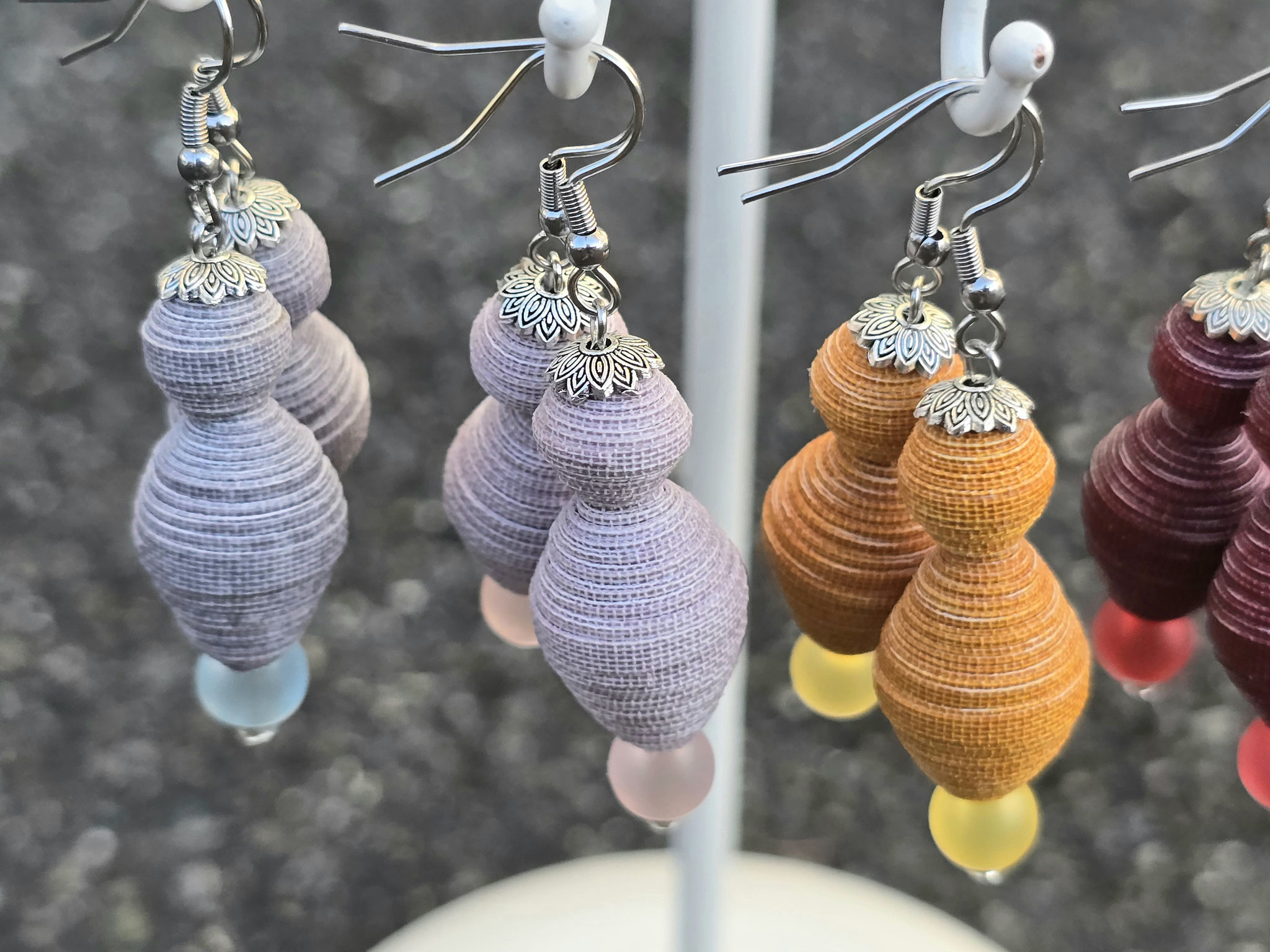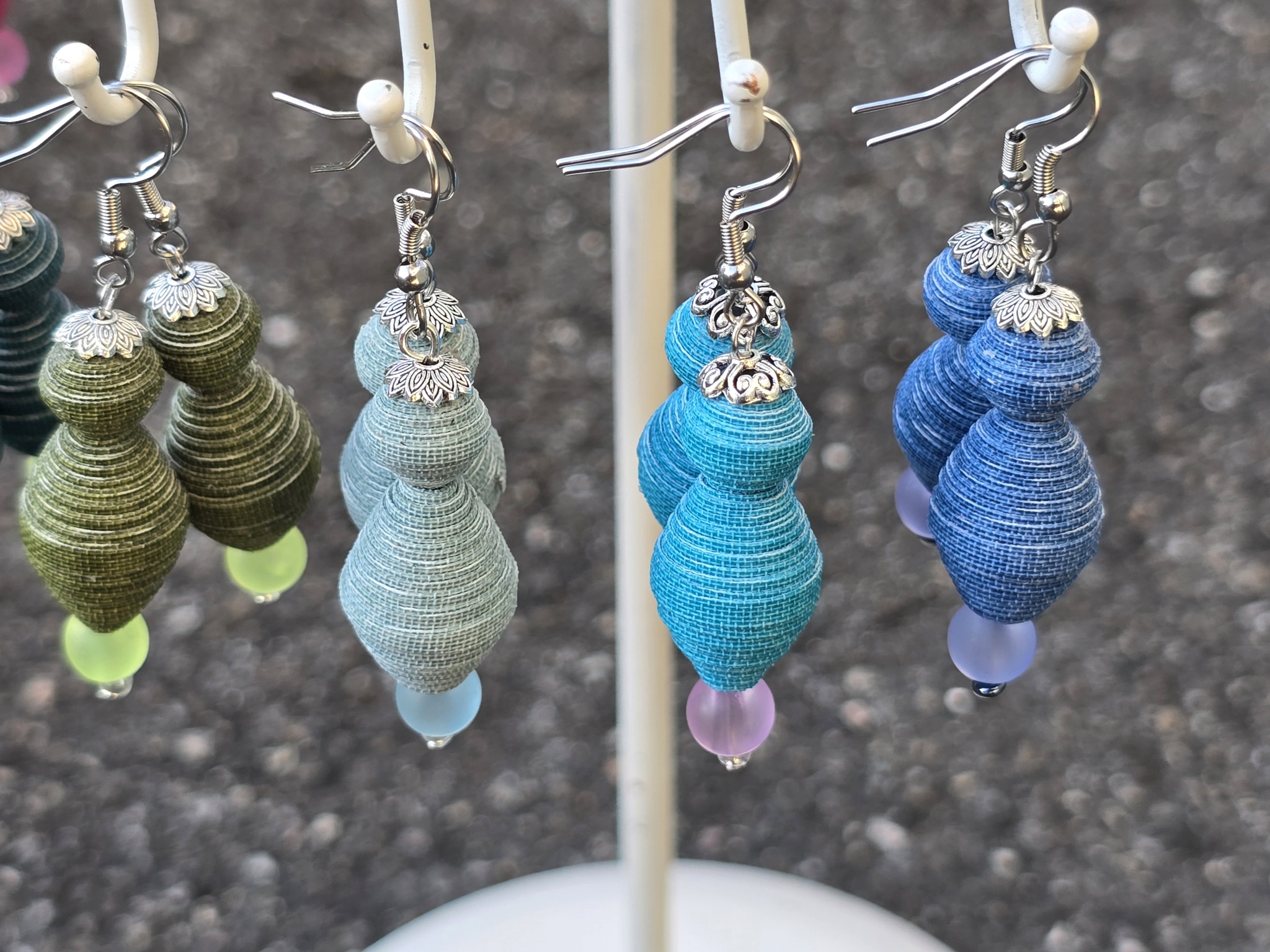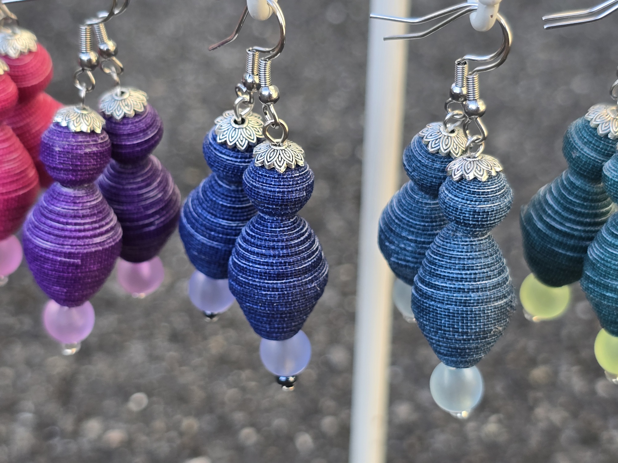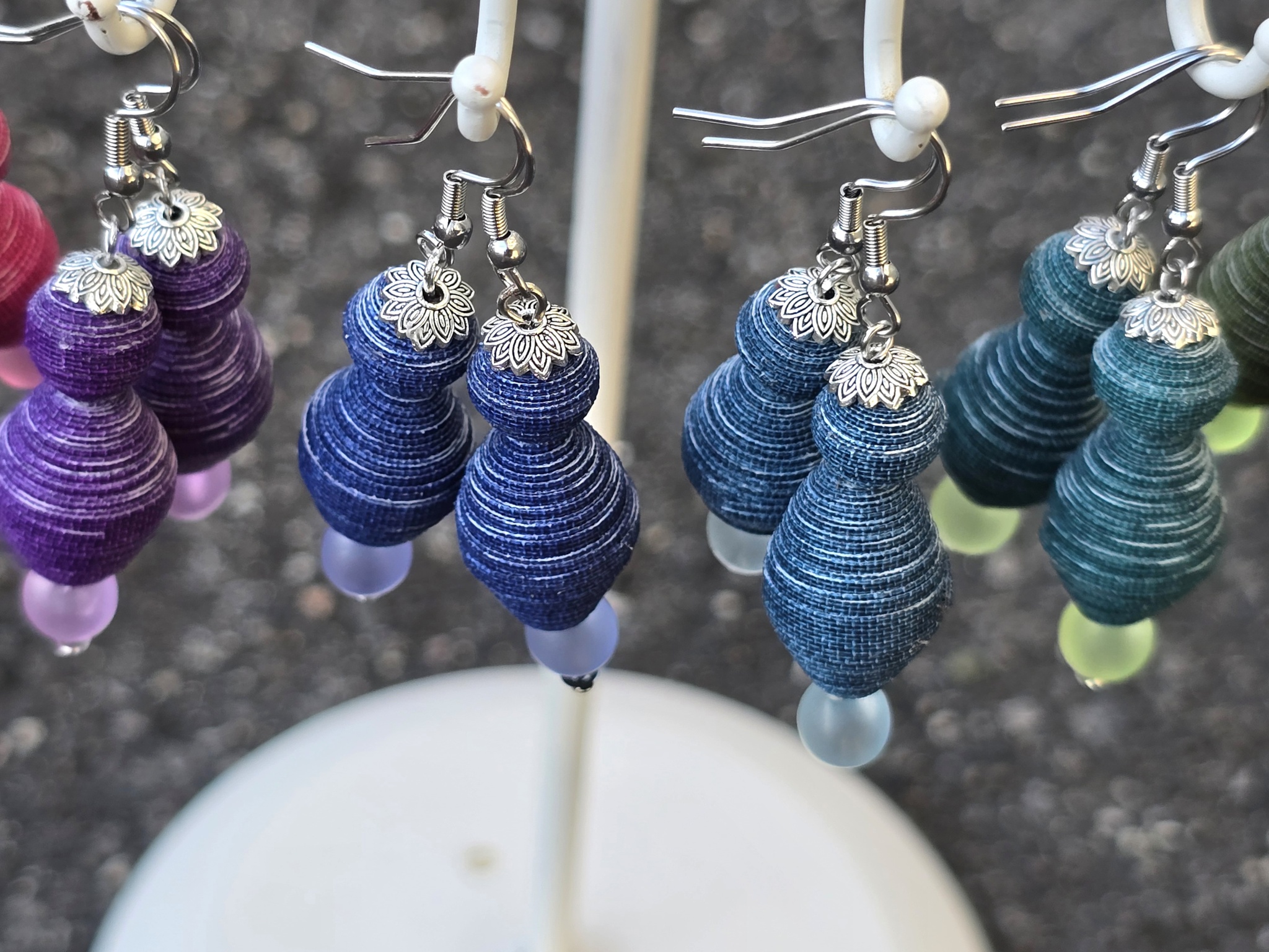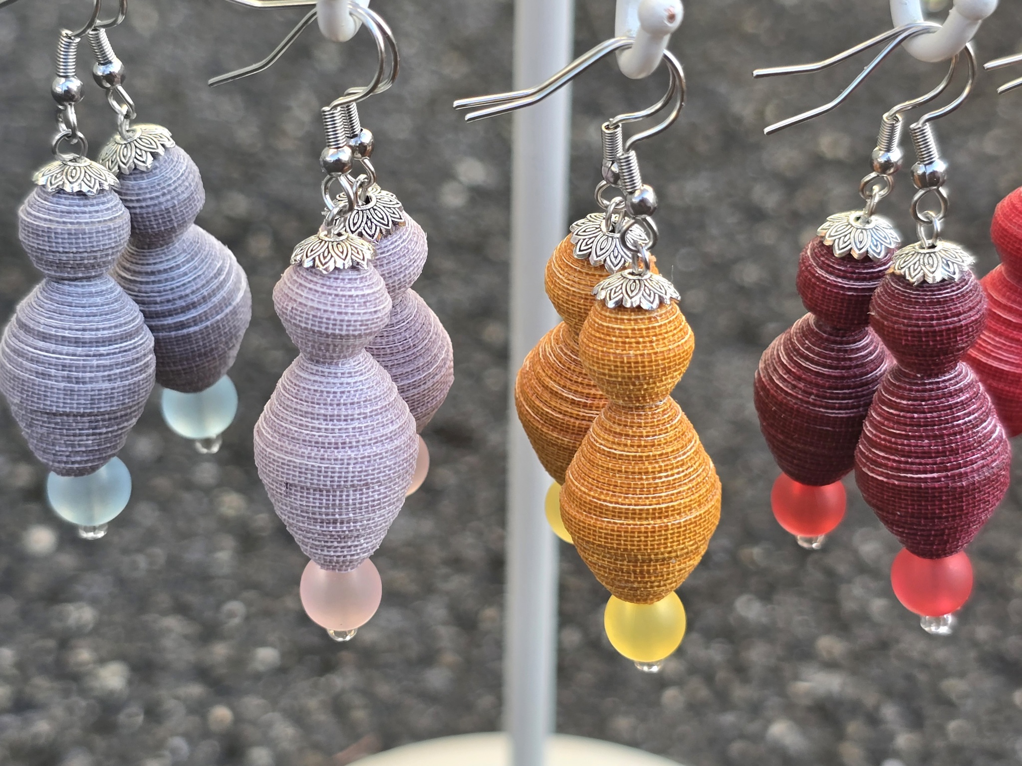 Lebensfroh wie alle unsere Unikate präsentiert sich unser Ohrschmuck in mindestens 13 ausdrucksstarken Farben. Jede Perle drehen wir von Hand aus unseren griffigen und langlebigen Einbandgeweben, woraus sich der ganz besondere Charakter und Charme ergibt.