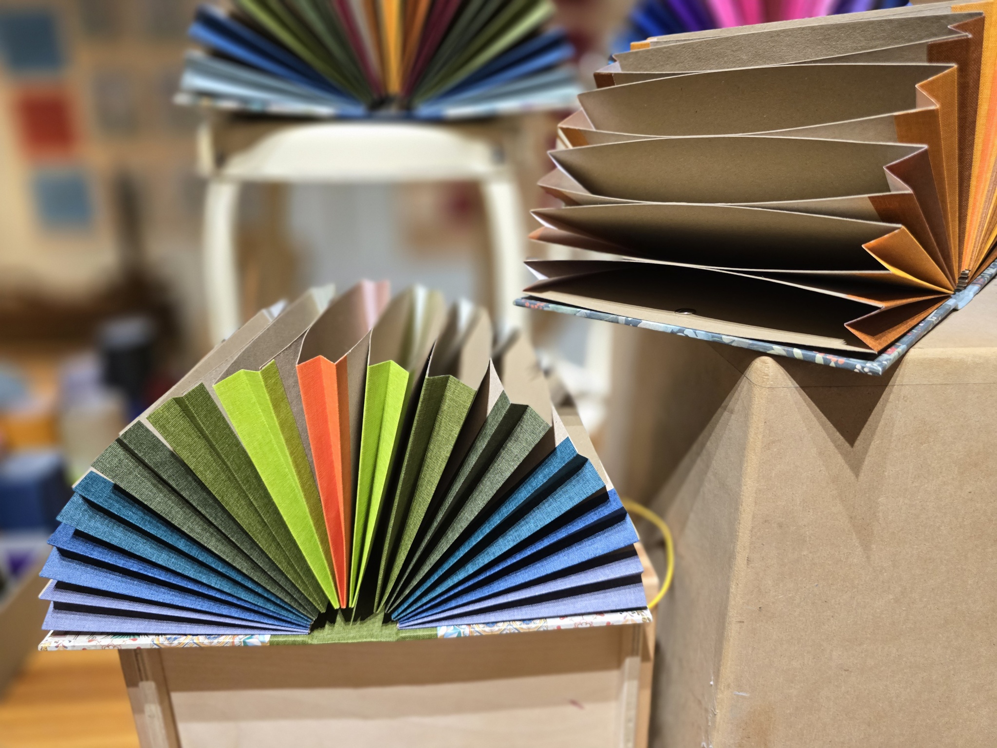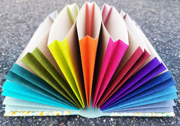 Für die Teilnehmer unseres Workshops "Sammelfächer" absolut kein Hexenwerk sondern eine entspannte Wiederholung. Aber auch für "Sammelfächer-Anfänger" ist es kein Problem, mit der Kurzanleitung zu einem farbenfrohen Ergebnis zu kommen.